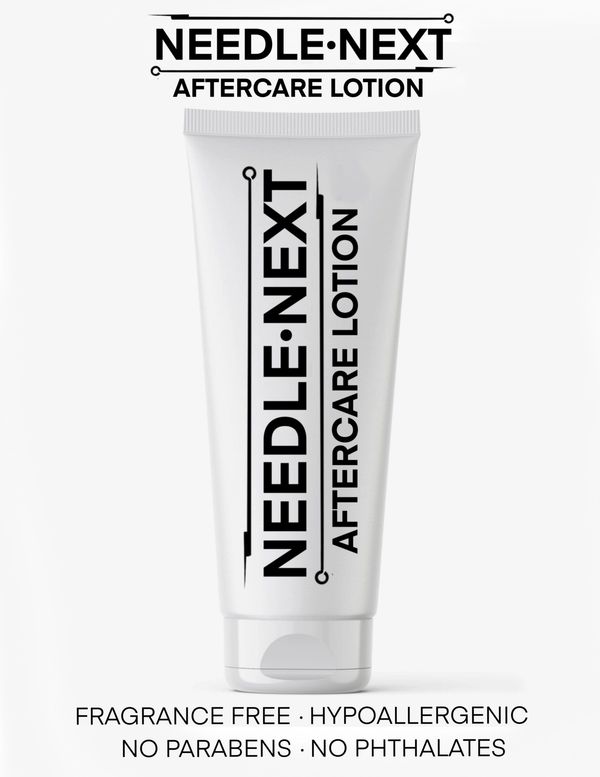 Recommend to start using 3 days after your tattoo session. Once daily after showering. Apply a small amount with clean hands to clean skin. Needle Next is a great natural healing lotion with pro-ceramide to help to restore and strengthen the skin's barrier. Use as a daily moisturizer to keep your tattoos looking vibrant. Do not combine with any other products.